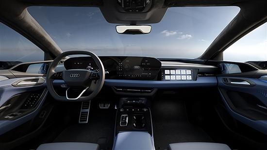 内饰方面,新车配备六屏联动系统,包括11.9英寸奥迪虚拟座舱、14.5英寸MMI中控屏、10.9英寸副驾娱乐屏、AR-HUD抬头显示以及电子外后视镜双屏。其中,副驾屏支持隐私模式;第二代增强现实抬头显示(AR-HUD)可清晰显示车速、交通标识、导航等关键信息;第二代电子外后视镜双屏采用高清显示面板,有效提升了雨雾、低光等复杂环境下的视觉清晰度。中控屏内置Avatar情感化语音形象及智能语音助手,支持“可见即可说”功能,交互体验更便捷。